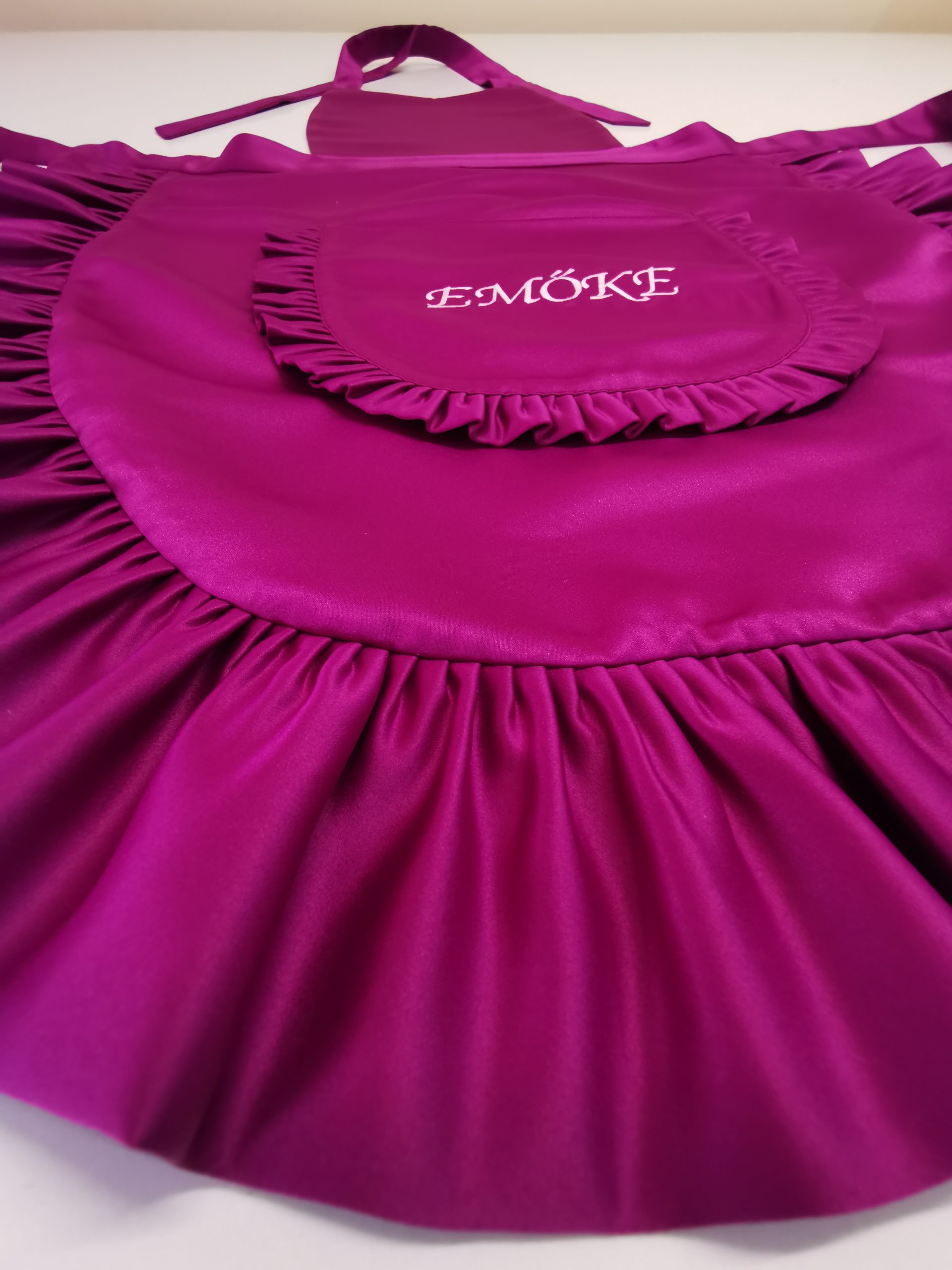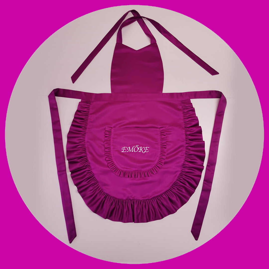 Prémium IWOLA hímzett fodros szatén kötény-fuchsia